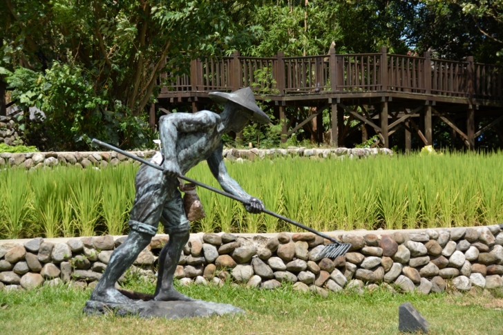 客家主題公園內仿造菸樓造型的涼亭,充滿客家風情
