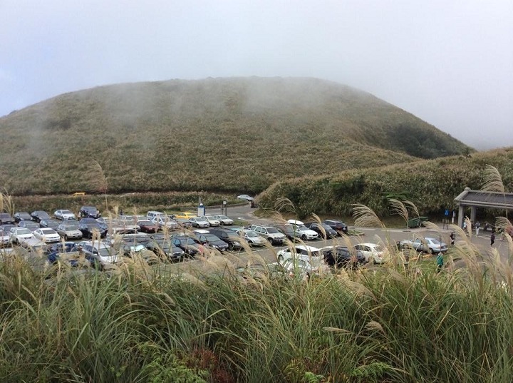 想不到今天太多人跟我犯了同樣毛病,假日的擎天崗雖不至於像菜市場一樣熱鬧,但一批批踏青健行的人們,真的可以用絡繹不絕來形容,以致於下山的小15公車人龍排得落落長,停車場車滿為患,連入口的路旁都停滿了車。