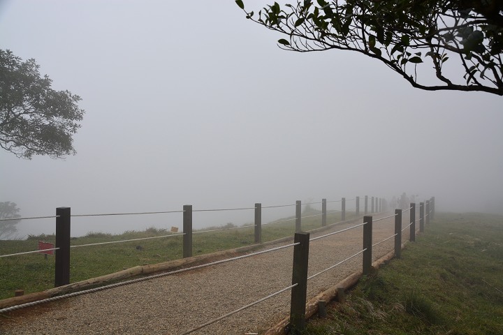 其實陽明山國家公園的大屯山、七星山、擎天崗這一帶,由於海拔較高又靠近北海岸,秋冬季節常常在中午左右雲霧就會籠罩上來,我已經遇到許多次,而下山過了菁山路"松園"後,又恢復晴空萬里、豔陽高照的好天氣。