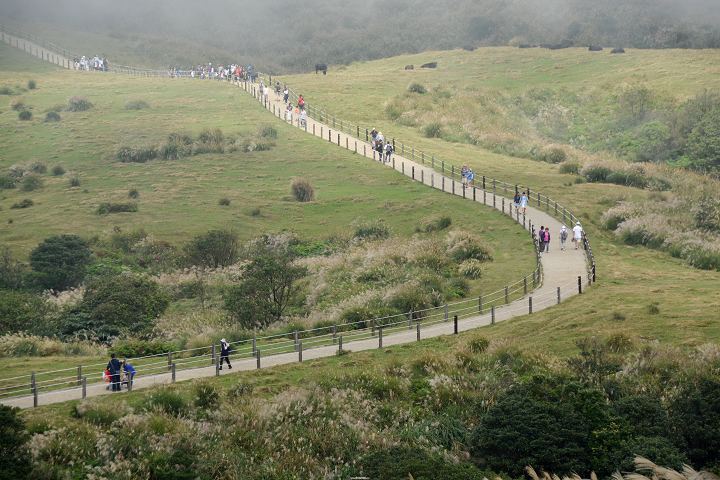 現在擎天崗似乎已不見牛群,倒是人群五顏六色的衣服為綠地妝點不少~