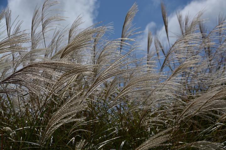偶有陽光穿透雲層灑落在翻飛的芒花上,也泛起了陣陣銀色光芒,隨著風兒搖曳,形成了秋陽下的銀白波浪,閃閃動人。