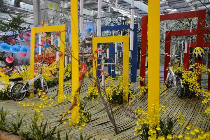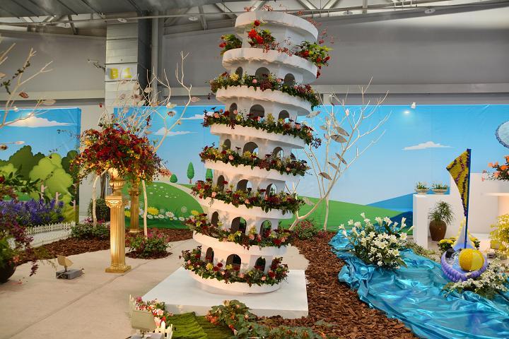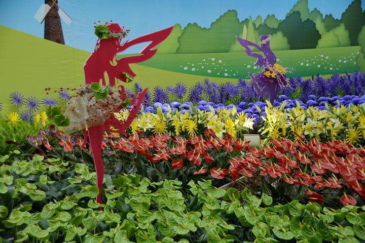 以台北地標101大樓為主軸,以各種顏色之蝴蝶蘭來妝點101大樓,讓繽紛的色彩布滿整棟樓,猶如煙火施放!另外,台北的Ubike也是非常令人稱道,利用麗格海棠及火鶴花、鳳梨花當季之開花植物,配以翠綠之植栽,構成一幅美麗景色!