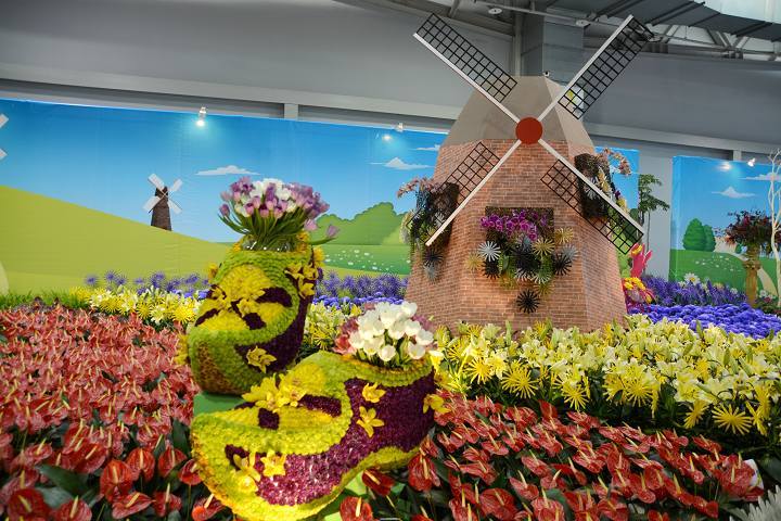 荷蘭最聞名世界且讓人津津樂道的,就是隨著風轉動的風車,搭配周圍五顏六色的花朵齊放形成花海景觀,還有荷蘭最傳統的國粹,也是荷蘭極具民族特色的工藝品"木鞋",綴滿了鮮艷的花卉和鬱金香,將展區打造成栩栩如生的花漾風車奇景。