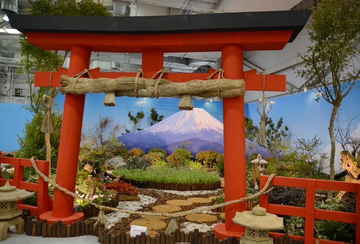 日本文化中,鳥居是日本神社的特有建築物,用於區分神域與人類居住俗界的標誌,也是對神的一種尊敬;在日本人的心目中,富士山有其獨特的文化和宗教象徵,富士山被視為聖山,是日本最高峰也是日本重要的精神象徵之一,透過造景及花卉結合的祥和感受,讓您深切體悟到日本文化追求人、花一體的平靜和諧境界。