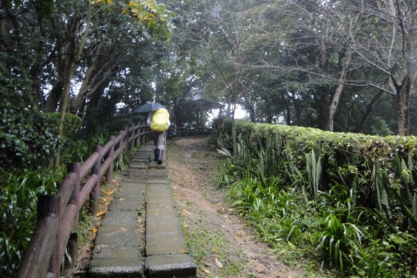 只是經過今天早上的大雨下不停,登山步道也變得濕滑難走,走來戰戰兢兢格外小心才是。才走上牛埔連峰步道,天空又開始飄下綿綿細雨,只好拿出雨傘來個雨中漫步。