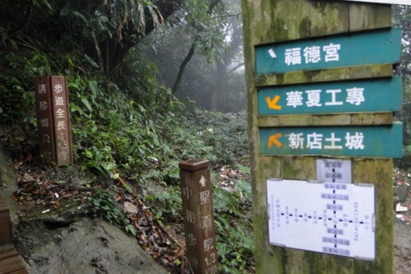 後山有登山步道分別通往華夏工專、新店、土城等,我們以前都走過,但今天雨勢不小,這些步道又都比較原始,下過雨的路況可能更不好,因此不太適合今天的這種天氣登山健行,改天等天氣好轉再來走走吧。