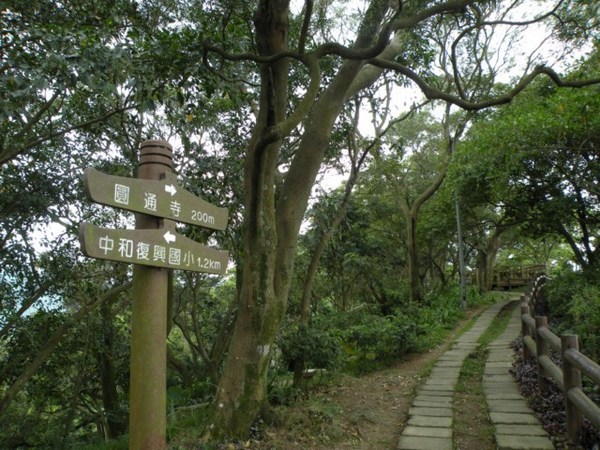 我們循原路一邊賞花一邊悠閒的走下山,到南勢角用過簡單的午餐,看雨勢漸漸小了,因此決定按照原訂計畫上圓通寺,由南山路復興大樓旁的小路上山。