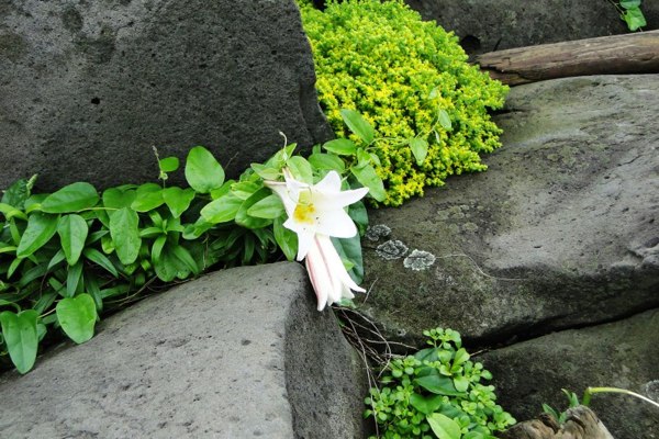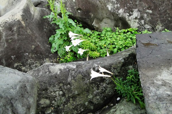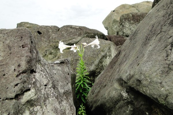 野百合堅的生命力在此表現無遺,縱然生長環境是如此的惡劣,還得忍受著強勁的海風吹襲和海浪撲打,這就是有著堅強生命力的野百合精神。