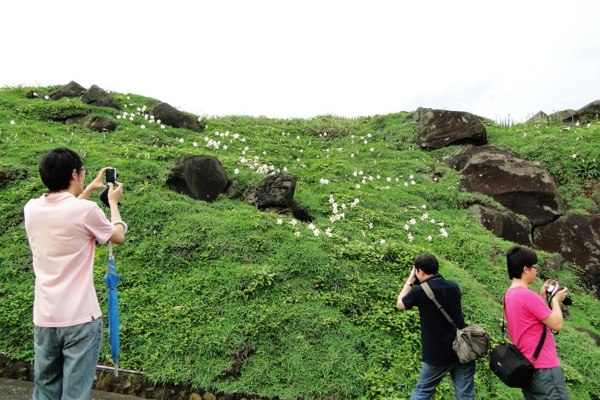 假日裡海邊有不少遊客到來,大家看到了這麼多的野百合綻放,紛紛拿出相機手機,拍下她們美麗的身影。