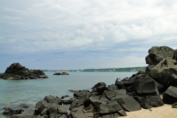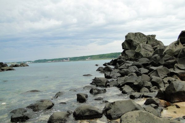 這是個美麗的海邊,與富貴角燈塔遙遙相望,「風稜石」就像大地的巧手特別為石門海岸留下的藝術作品。聽說是約八十萬年前,大屯火山群爆發,火山熔岩冷卻形成的安山岩,長期以來一直受到海邊強勁的風力夾雜著細砂琢磨,形成這些有稜有角又有各種造型的黑色雕塑品。