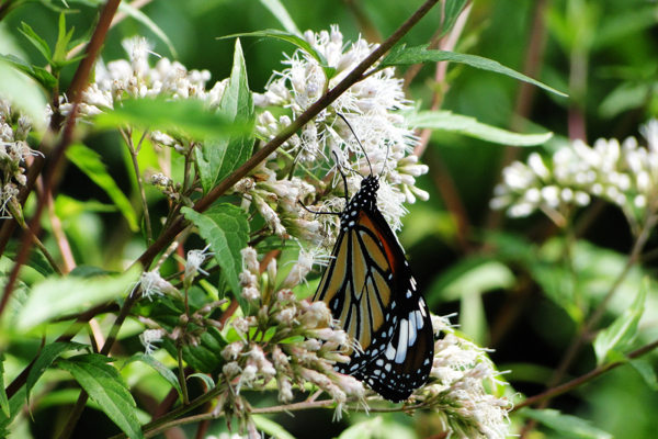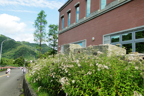 生態教育館外牆邊種了一排澤蘭,現正值盛花期,吸引了好多蝴蝶飛來覓食,數量之多讓人驚嘆不已!