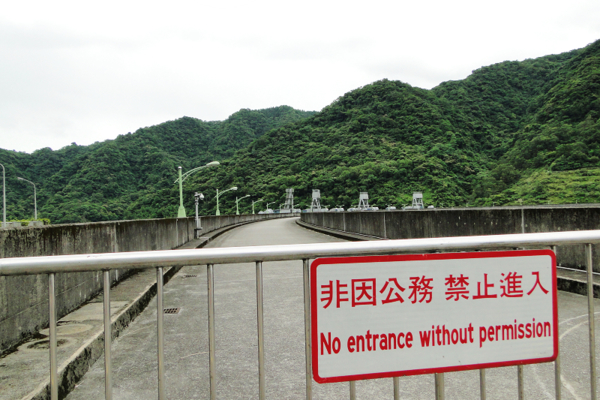 大壩上方禁止一般遊客進入,後方的操作大樓,為掌控大壩各閘門之操作及監控,並為防災處理之副中心。