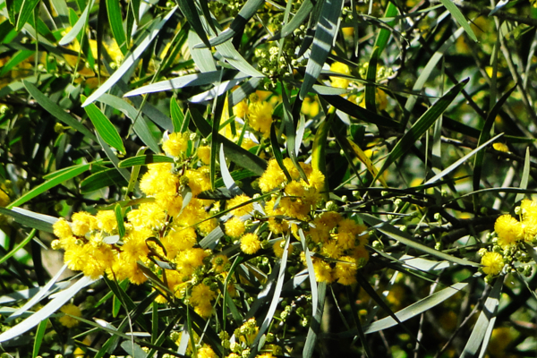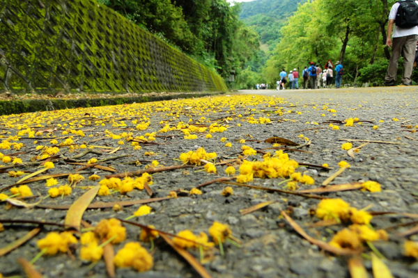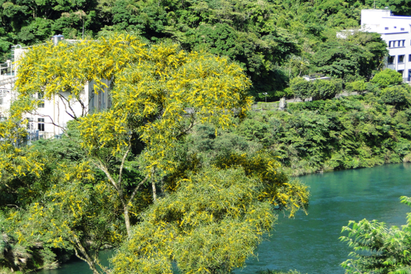 北勢溪旁的相思樹上已掛滿了黃色的小小火球,是相思樹開花了,每年桐花落幕時,也正是黃色相思花盛開的時候。