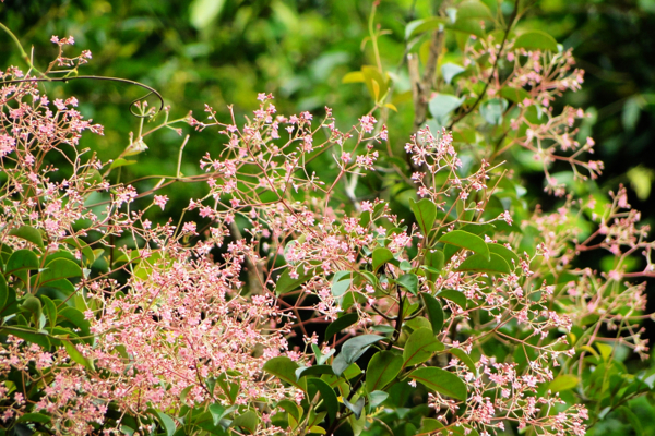 美麗的「杜虹花」也是綻放在四五月間,春末夏初悄悄為山林披上粉紅的彩衣,錦簇的花團由許多的小花密集而成,對生的葉腋裡成雙點,且一節接一節地開滿了枝頭,讓人看了總是不停的讚美。