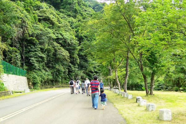 老師帶領我們從停車場走到大壩一路上做生態導覽解說,這段路程約2公里,大部份為上坡路段,此時太陽公公剛好躲到雲層後面去了,讓我們免於受到太陽的曝晒,一路走來倒也輕鬆自在,很多家庭都是全家老小總動員,藉此享受全家人團聚的寶貴時光,又可讓大人小朋友增加不少新知識,真的是非常有意義的活動!