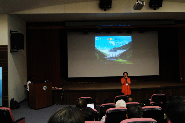 進入「水資源生態教育館」,管理局秘書室的主任先跟大家作簡單的介紹,和環境課程解說,接著就是十九分鐘的「山水翡翠」多媒體簡報,讓大家更了解翡翠水庫。