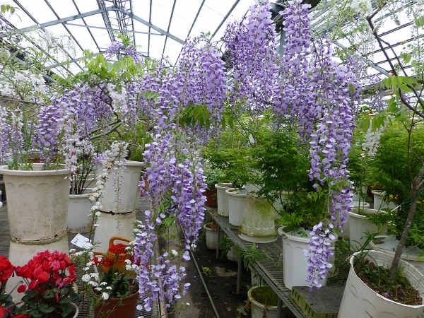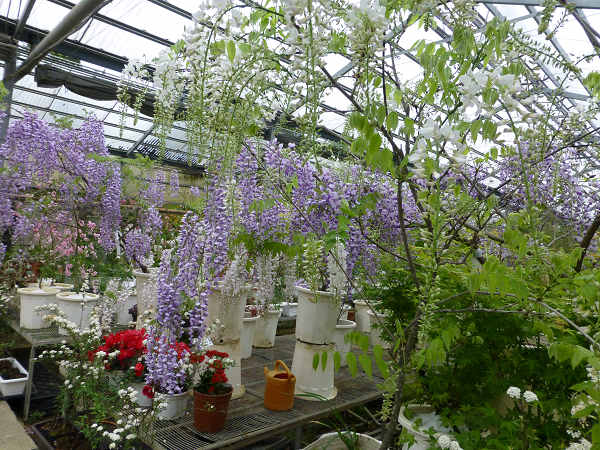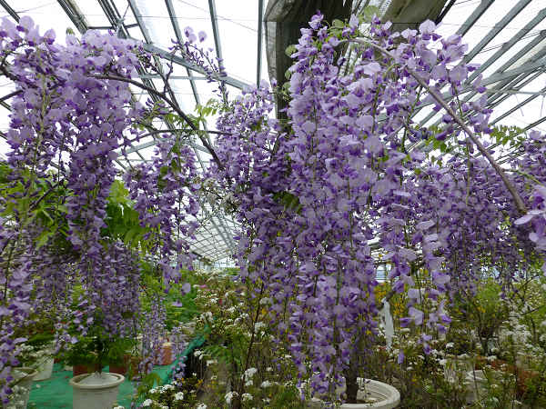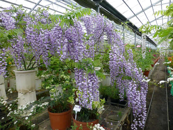 除了紫藤之外還有稀少的白藤,花穗也是很長,我去年在杉林溪見過,沒想到這些種在花盆裡的紫藤和白藤,竟然長得這麼好,也許是海拔和氣候適宜的關係吧?還是農場栽培的技術了得?