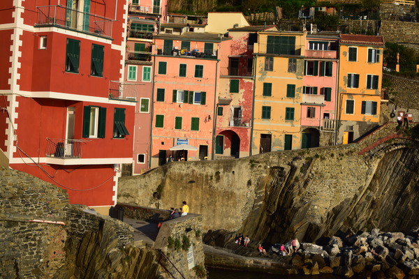根據她們的行程計畫手冊,他們昨晚住希安那,早上遊過了錫耶那的坎普廣場(Piazza del Campo,就是那位女士口中的大廣場;我也是一早上才從錫耶那來到這座台譯「五漁國家公園」的地方。但是,我一路從錫耶那過來,除了換車,沒有停留,趕到我說的「五地國家公園(因為Cinque Terre 為五塊地的意思 )」,已近下午三點。旅行團一個早上的行程,我得花兩天,換車再換車。而我在錫耶那待了一天半,她們花了兩個小時看過大廣場和大教堂。