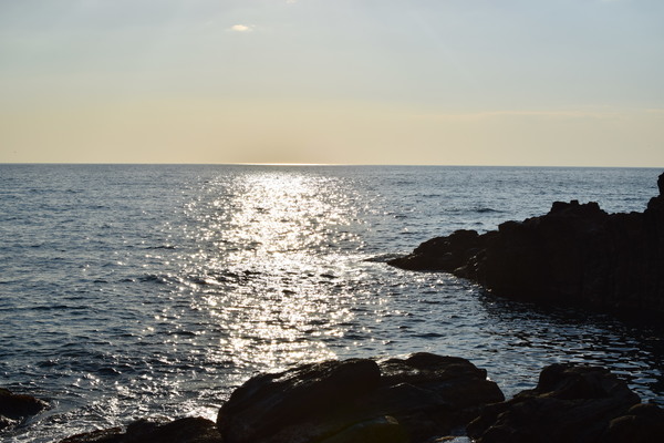 西沉夕陽,一束金光從海面閃過來,照到觀景台,我們有如坐在包廂的貴賓,正享受光點聚焦、眾人喝采。背後的短草山丘也染上一片金黃。正是攝影的黃金時刻,我的快門摁個不停。