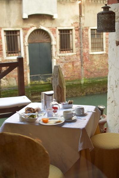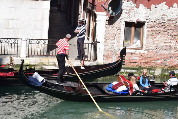 歐洲古城往往道路狹窄,威尼斯更甚。大概築城時完全沒有車輛交通的考慮,有些巷道窄到只能一人行走;有逆向行人時,一方必得側身讓路,另一方才得過。而且小巷裡也有許多短橋,都是拱橋,都有階梯,下方運河方能行船。方才在大街上,上前幫忙一位年輕媽媽吃力地推著娃娃車上拱橋階梯。少婦道謝之餘的表情有點埋怨,古城缺乏無障礙設施。自己則很慶幸行囊在肩上,無需提箱過橋。