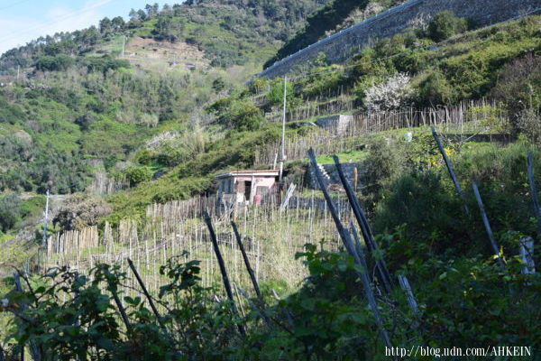 這樣的環境,有八九百年的歷史,種植葡萄、製酒;為了減緩土壤流失,沿著等高線,農民用農地裡挖出的石頭砌出一道又一道的石牆,做出一階階的旱田。據說,五漁的駁坎石牆,總長度可縱貫義大利國土。