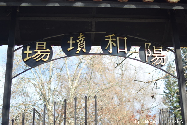 門口簡單的牌樓有四個歪斜的漢字:「場墳和陽」。想了一下,應當是「陽和墳場」,牌樓上的漆色看不出來,那是上個世代立的牌樓,還是右行的寫法,這時代沒人這樣寫中文的。那四個細明體字掛在牌樓上顯得單薄,字體比例也不太對勁,有點因簡就陋的意味。說是牌樓,有點抬舉,其實比較像道大宅門面,有個遮陽的頂蓋、有道鐵柵欄當門就是了。