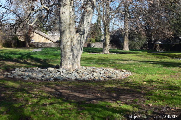 原來,墳場在一片美利堅河(American River)岸的河灘地,美利堅河像臂彎,將這片河灘地圈在手肘裡側。十九世紀中葉有群華人群聚在河灘地上,後來一場大火把這河濱唐人街燒個精光;人們也幾乎忘了有這座河灘唐人街。一百多年後,上個世紀中期,一位考古學家無意中在河邊撿到一些不尋常的鍋碗碎片,經過鑑定,證實是廣東四邑一帶鍋碗的式樣,才開始有人找相關的史料,證實有華人參與淘金的熱潮。墳場外面的地勢陡急地向數百公尺外的美利堅河傾斜,墳場下方得確有塊空地,極有可能是當初河灘唐人街的所在。福森市區在距離河灘不遠的小丘上,高高在上,不必擔心洪患;那個年代,沒有置產權利的華人,只有群聚在這個邊緣地帶築屋造鎮。忍受水患的威脅。若非1980, 90年代福森快速拓展,建商看中了這塊離市區只有一條公路之隔的河灘地,準備開發住宅,陽和墳場也不會重見天日。早個五十年,這些遺骨就會被挖起,荒塚剷為平地.劃分成幾塊建地,見起花園洋房。幸運的是,1980, 90年代,加州已經懂得尊重華人的貢獻,這片亂葬崗被當作歷史地標保存下來。