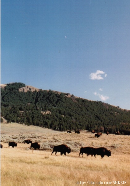 有一次,在石子路上遇上大隊牛群,泥土路面瞬間揚起大片塵土,藍天轉眼變色,無色的陽光轉為金色的光束,射進擋風玻璃。我抬頭望,看不見蒙大拿天空;一轉頭,一隻路過的牛,好奇地瞪著我看!