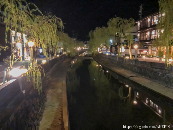 原先打算,飯後再下一湯;但是溫泉旅館的お馳走(大餐)之後,我們母子只能到涼風橫掃的街上去壓馬路。