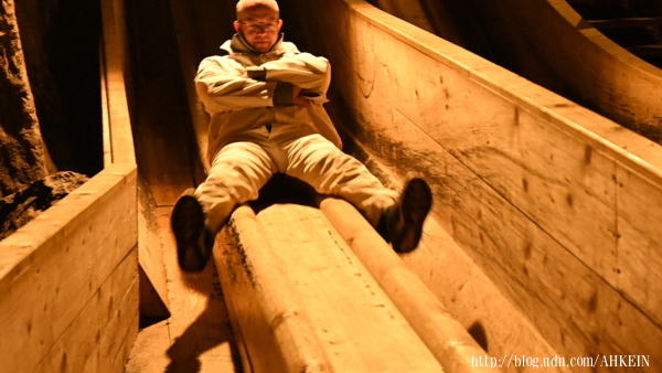 整體來說,鹽礦主題館的設計活潑多樣,除了滑梯,遊客也搭乘了一段礦工出入的小火車,那種像玩具火車的輕便車,只有板凳架在輪子上的小火車。根據軌道遍佈坑內,還直通坑外的事實來判斷,我倒相信,那真的是礦工的交通工具。比較鹽礦主題館和前一日造訪的大冰穴兩處景點,前者寓教於樂,適合全家同遊;而大冰穴可能在公家經營下,生態保育的包袱比較大,導覽偏重知識性,除了解說與多媒體,並無其他活動;倒是走了不少狹窄陡峭的樓梯,整個行程稍嫌沉悶。