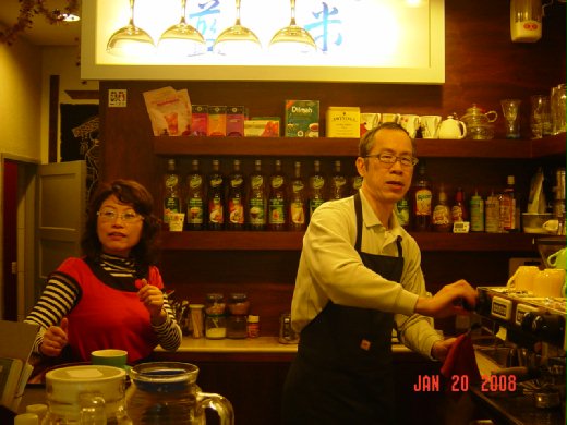 一、週日由台北開車南下,途經彰化心血來潮即下交流道,想一訪久違的藍維萬和品嚐聞名中台灣的藍米咖啡,經電詢辛習群問路稍費一番折騰還是找到了。 二、進入店內只見男女主人正在用膳,此時已是下午4時,維萬立刻問客:先生喝點甚麼飲料?我笑答:來杯咖啡!此時他認出是我,唉!是老袁,請坐。大家大笑幾聲握手寒暄! 三、坐定後我點了杯原味卡布其諾,內人則點檸檬汁飲料,品嚐後感覺口感甚佳,難怪該店在彰化聞名遐邇,非常受到文教圈歡迎;中午用餐經常是一位難求。(店內掌廚是藍兄,口味以少油、少鹽之健康簡餐為主。)他們則是利用空檔吃飯。 四、藍大嫂是網路高手,店內設有無線上網,並設有專屬網頁,只要在搜尋引擎打上藍米咖啡即可找到。也可運用網路訂購餐飲,並兼做外場,在他們認真辛勤經營下,生意已經上了軌道。 五、與男女主人暢談約一小時,大家相談甚為愉快,因尚要趕回高雄晚餐,隨即告辭感謝他們熱情接待,繼續上路返家。 | ||||||||||||