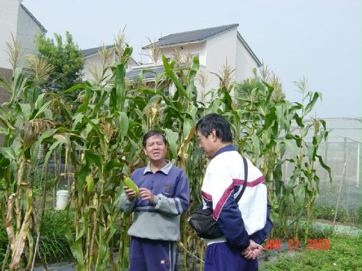 一、元月27日上午金師父伉儷相約至種菜達人健雄的有機菜園參觀,郭三也興致勃勃騎單車一同加入行列,會合後前往第一處與學弟共同開發的菜園參觀。(前年底介紹過) 二、進入後大家驚呼連連:好大的木瓜!好翠綠的蔬菜!好大的高麗菜與包心菜!學中醫的金師父對奇花異草特別有興趣,拔了幾顆神秘果,要郭三吃幾口,再要健雄摘些小金橘(尚未熟,綠色的)切開嚼下,照理應該很酸,說也奇怪,居然是甜的! 三、對做菜有獨到心得的郭神廚,看到滿園子的肥碩的有機蔬果,高興的不得了!直說要回嘉義把那荒蕪的山坡地好好開墾。蓋個農舍經營有機田園餐廳. 四、健雄隨即拔顆玉米,說請我們品嚐最新品種的水果玉米,嘗過後真像吃水果,真是開了眼界! 五、大家問怎麼沒有看到左大嫂,主人回答:在另一個菜園為我們準備午餐。隨即轉移到附近第二處菜圃。