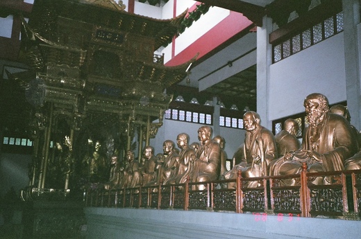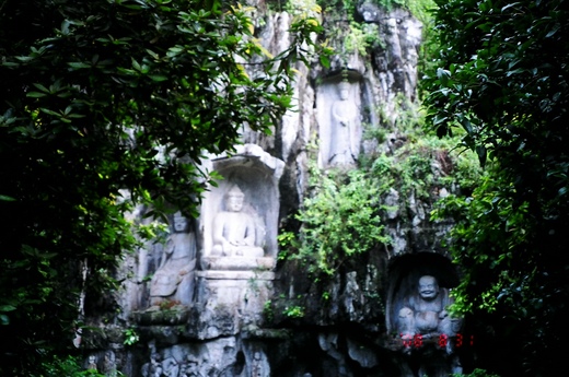 一、事實上抵達杭州第一站先到靈隱寺參觀,該寺位於杭州西湖靈隱山麓,背靠北高峰、面朝飛來峰,建於東晉咸和3年(西元328年),是江南著名古剎之一,北宋時氣象恢宏的靈隱寺列為禪院五山之首,又稱為「雲林禪寺」;靈隱寺占地100多畝,依山而建臥躺在群山環抱中,並擁有許多細緻精美的石壁雕刻,靈隱寺殿宇恢宏,寺內的殿宇、石塔、佛像、亭閣、法器及字畫等建築和歷史文物,在建築藝術史和佛教史上都非常具有歷史價值。 二、雲林禪寺的由來是有一回康熙南巡時,曾經到靈隱寺後方的山峰登高攬勝. 康熙看到山下雲林漠漠,整座寺廟籠罩在一片淡淡的雲霧當中,覺得十分幽靜,於是就賜名"雲林禪寺"並親自留下墨寶。 三、五百羅漢殿,則是聲勢浩大,殿內真的雕塑了當年聽佛祖講道的五百尊形象各異的羅漢像,表情,身材,服飾完全不一樣,且整體建築物規劃呈佛教的卍字型,相當具有巧思 。 四、飛來峰是石灰岩地形,由於長期受到地下水的侵蝕,因此形成許多奇特多變的洞穴,飛來峰有許多自五代到宋、元以來的石窟佛像,可與四川大足石刻媲美,但在文革時被紅衛兵破壞得太嚴重了,如今大陸已經盡力維修古蹟希望能挽救一些古文明。 五、相傳後來濟公曾經在此靈隱寺出家,由於他遊戲人間的故事家喻戶曉,靈隱寺因此名聞遐邇。