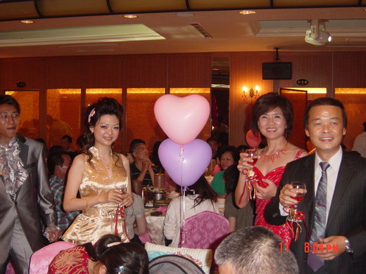 與會同學與眷屬 一、金武仁本日應酬較多,無法與會派其大公子夫妻代表參加。 二、梁安華伉儷也盛裝參加,添龍難得一家四口到齊與會,福洋也帶老婆參加喜宴,秉宏、兆民與我則單身與會共襄盛舉! | ||||||||||||||||