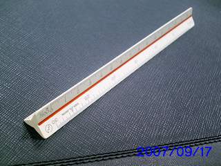 這玩意兒叫比例尺﹐是以前工程製圖時和平行尺(更早之前是丁字尺)、三角板合為最基本不可或缺的工具。