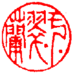 首先﹐將三字均分各約佔1/3﹐然後動翠字的腦筋﹐這件羽衣﹐衣上兩點﹐當是古時衣上的扣子﹐將之翻開向右潑灑﹐印面即變得活潑且勻了。遺憾的是蘭字太對稱﹐未及整體呼應。