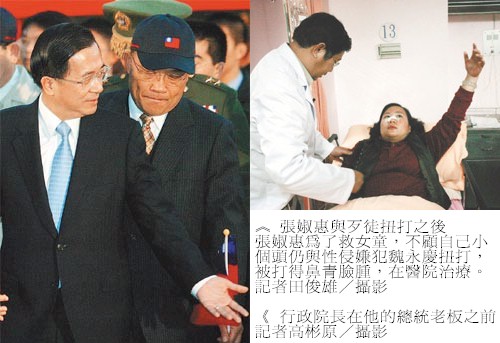 ˙報載行政院長蘇貞昌於070114到花蓮向慈濟請求開示﹐然後到花蓮醫院探視見義勇為遭打傷的張婌慧。蘇貞昌和李逸洋等人欽佩她見義勇為的精神,紛紛給予肯定,致贈慰問金,並祝她早日康復。
