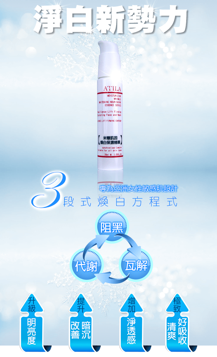 全膚質,針對斑點、 黯沉、膚色不均與敏感膚質。
