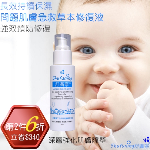 敏感肌膚問題肌膚知名保養品牌-舒膚寧,致力於敏感及問題肌膚的保養研究,成分中,採用複方天然草本植物組合物,經歐盟認證及韓國植物精萃領先專利草本抗敏修護因子(臨床測試),國外各研究學術單位研究也證實專利草本抗敏修護因子,具抗炎和舒緩異位性皮膚炎及各式發炎問題肌膚之功效,有效舒緩皮膚發炎刺激反應並提升肌膚障壁的修復度。另外,摩洛哥堅果油、乳木果油、Vit B5、蜂蜜保濕、油菜籽甾醇、牛奶蛋白、甘油等保濕補水則幫助肌膚鎖水,好比肌膚的皮脂膜能避免水分的散失;再加上分子釘修護的作用,可提升肌膚的防禦力,讓肌膚對外界的環境不那麼敏感,專利成分能強化肌膚障壁、避免疤痕的產生並具有降低過敏、舒緩修復的功效。