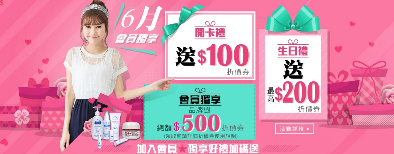 ● 加入後立即享有開卡禮折價券$100元,每年生日再贈生日禮折價券$200元。