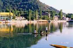 喀什米爾最美麗也是最大的湖泊 ─ 達爾湖(Dal Lake)。達爾湖的湖水是來自喜瑪拉雅山上的白雪,春季開始融化後流入達爾湖。