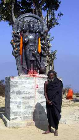 告別三位老者之後,休息的也差不多了,再開始往上爬…..當我們爬上頂之後,又遇到一堆人和一位BaBa(修行者),他又要我們坐下來閑聊一番,我和S真的又坐下來和他們開始開港…。