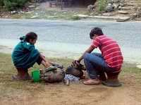 圖二:Arati正在幫忙抄羊血。