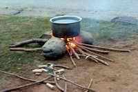圖三:達善節的第八天,清晨才剛有微光時, 家家戶戶就在自家門口升火煮開水了
