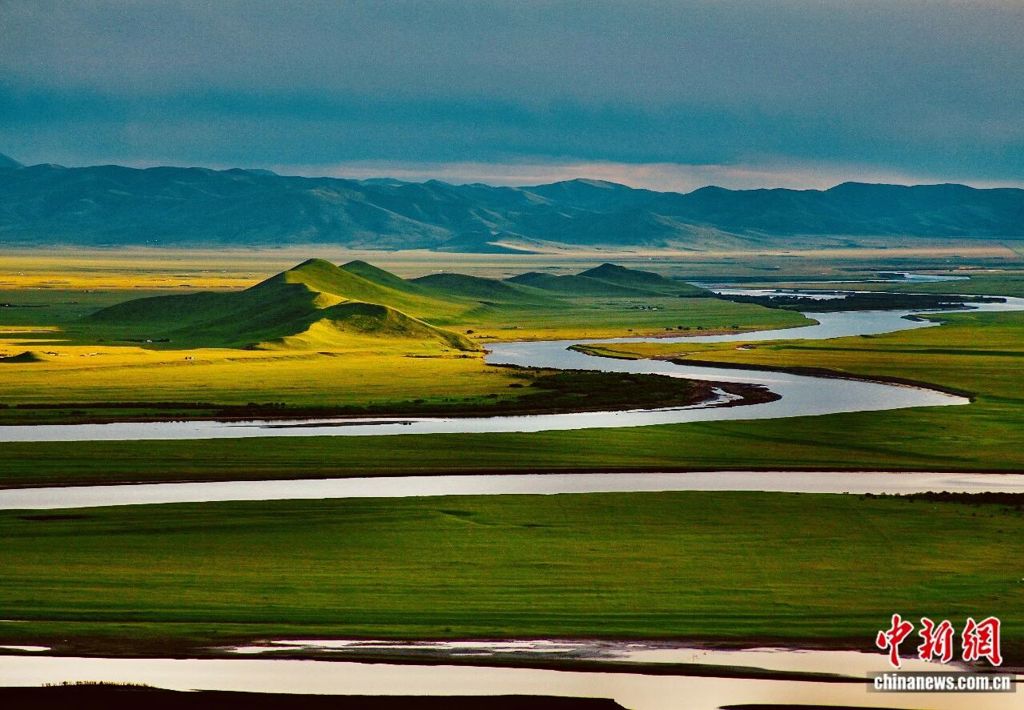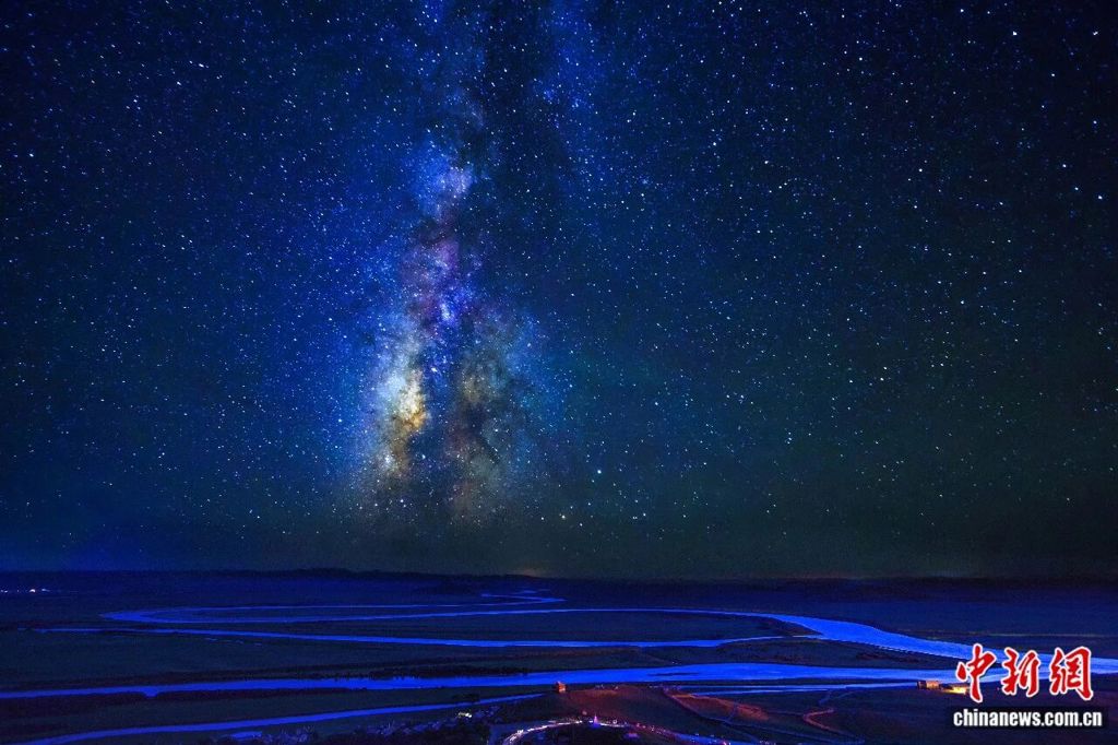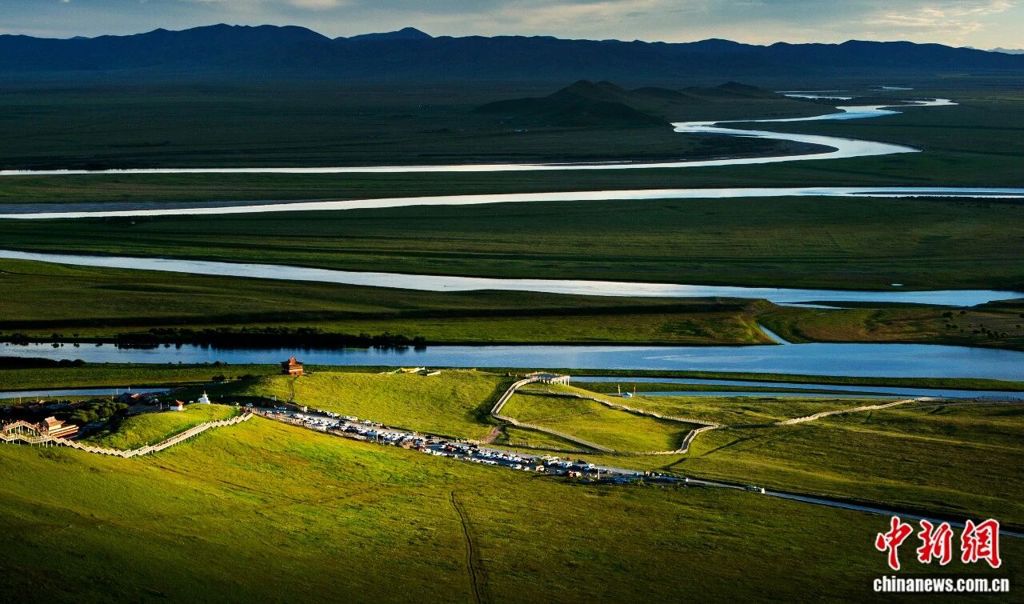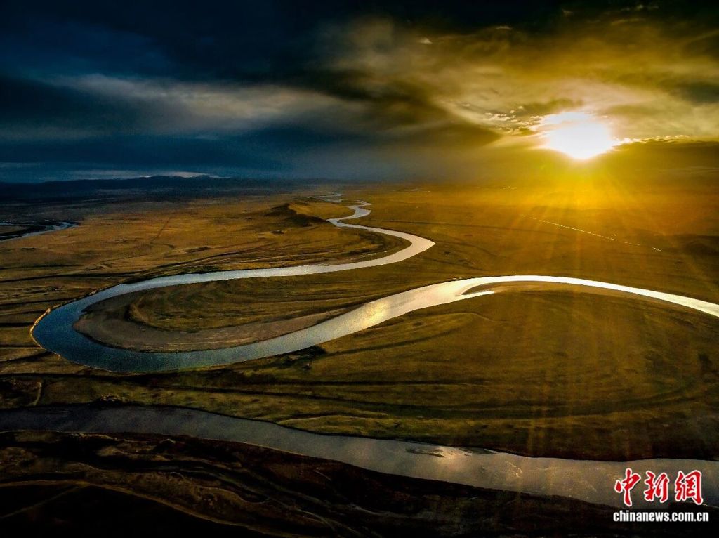 黃河從巴顏喀拉山奔騰而來,在廣袤的若爾蓋濕地形成一個大大的回灣,放眼望去,茫茫草原與絲帶般的黃河融為一體,「落霞與孤鶩齊飛,秋水共長天一色」的意境在此完美呈現。