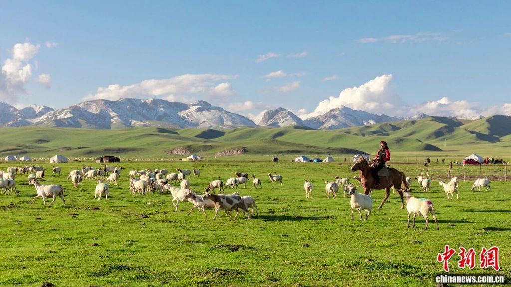 漫山遍野的野花將草原裝點成一塊彩色的地毯,斑斕的色彩從眼前延展到天際。成片的野花開滿草原,陽光下與藍天相呼應,溫暖而又明媚。