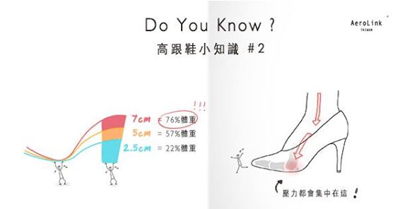 高跟鞋小知識 #2 上一次的高跟鞋小知識向大家介紹了高跟鞋的後跟傾角,這一次則要和大家介紹穿著高跟鞋時的前腳掌壓力和舒適度的關係。 穿著高跟鞋時,前腳掌會承受身體的大部份的重量,高跟鞋的後跟高度越高,...