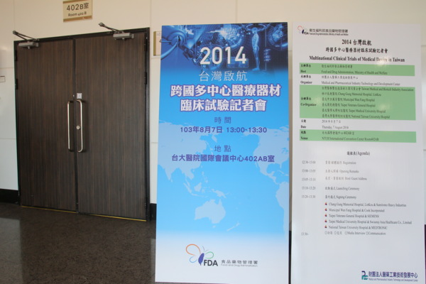 行政院衛生福利部食品藥物管理署,為建置臨床試驗環境不遺餘力,於103年8月7日舉行跨國多中心醫療器材臨床試驗記者會,正式宣告台灣臨床試驗環境的設置,並期許台灣成為亞太地區醫療器材工業之研發、製造與營運中心及全球運籌中心,迎向醫療科技新視界!