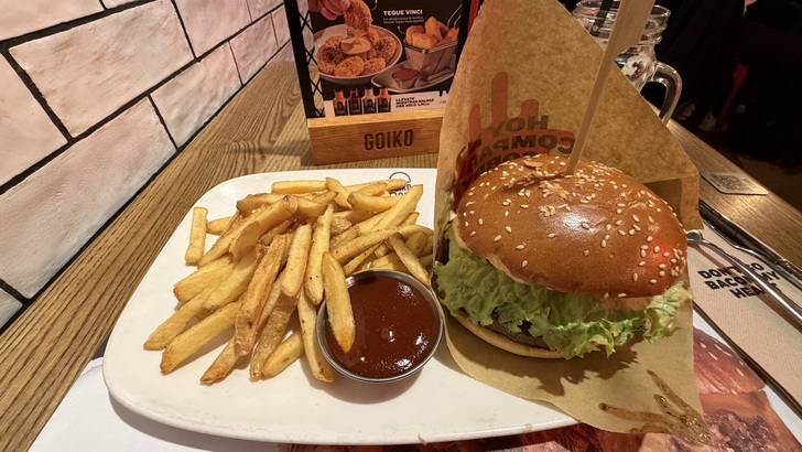 辦好入住手續,該去找晚餐填飽肚子了。雖然西班牙一般晚餐都很晚吃。可是接近午夜,又是週末,有開門的餐廳不多(喝酒的不算)。找到一間漢堡,網路上的評價似乎不錯,這時也顧不得價錢了,隨便點了些,先吃飽再說。