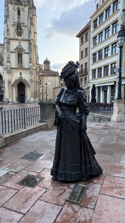 主教座堂前的廣場邊,又是一座銅像。這是 Leopoldo Alas Clarín 的小說,La Regenta 的主角 Ana Ozores 。據說這小說是一部精神科方面的經典,不過我當然是沒讀過了。